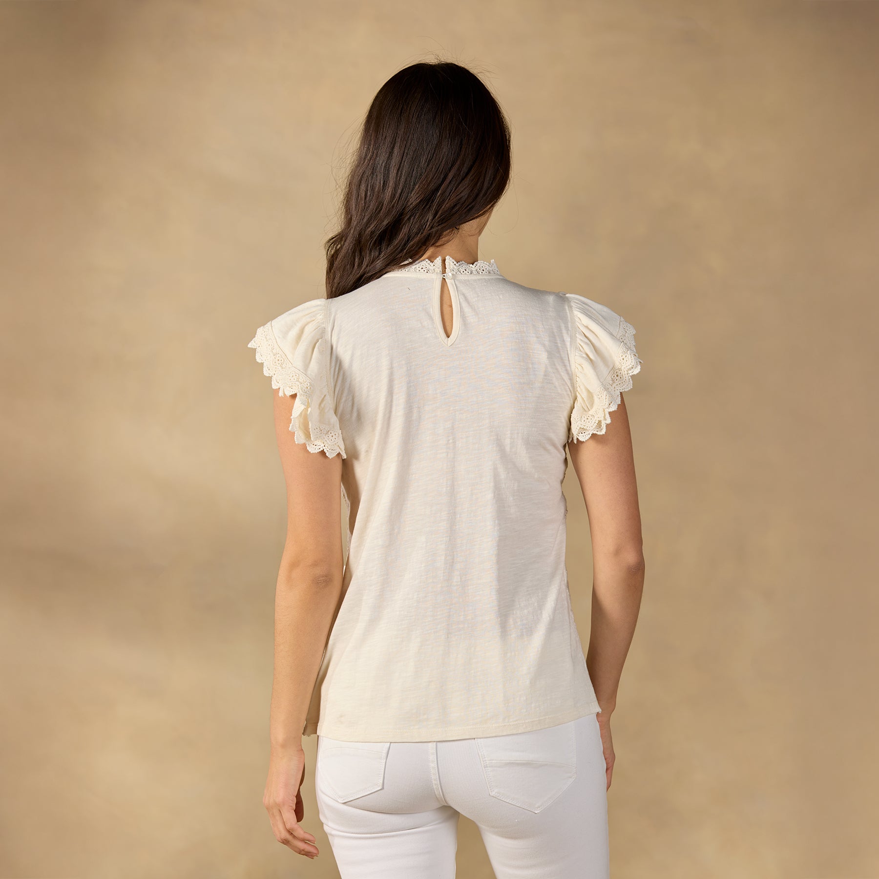 A feminine touch in every detail. our Alhambra Top is textured with intricate crochet. an extra embellishment of eyelet along the sleeves. Cotton slub back. Cotton. Machine wash. Imported. Exclusive. Sizes XXS (00). XS (0?C2). S (4?C6). M (8?C10). L (12?C14). XL (16?C18).?
