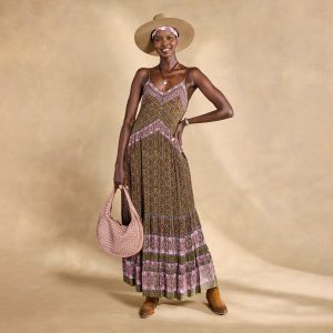 With a name that means supreme leader. our Naidu maxi is destined to become queen of your closet. A flattering V-neck graces the covered-button bodice. while all-over floral and border prints cast the perfect bohemian vibe. Adjustable straps. side-seam pockets. side zipper and full lining. Viscose. Machine wash. Imported. Exclusive. Sizes XXS (00). XS (0–2). S (4–6). M (8–10). L (12–14). XL (16–18). Approx. 49.75l.
