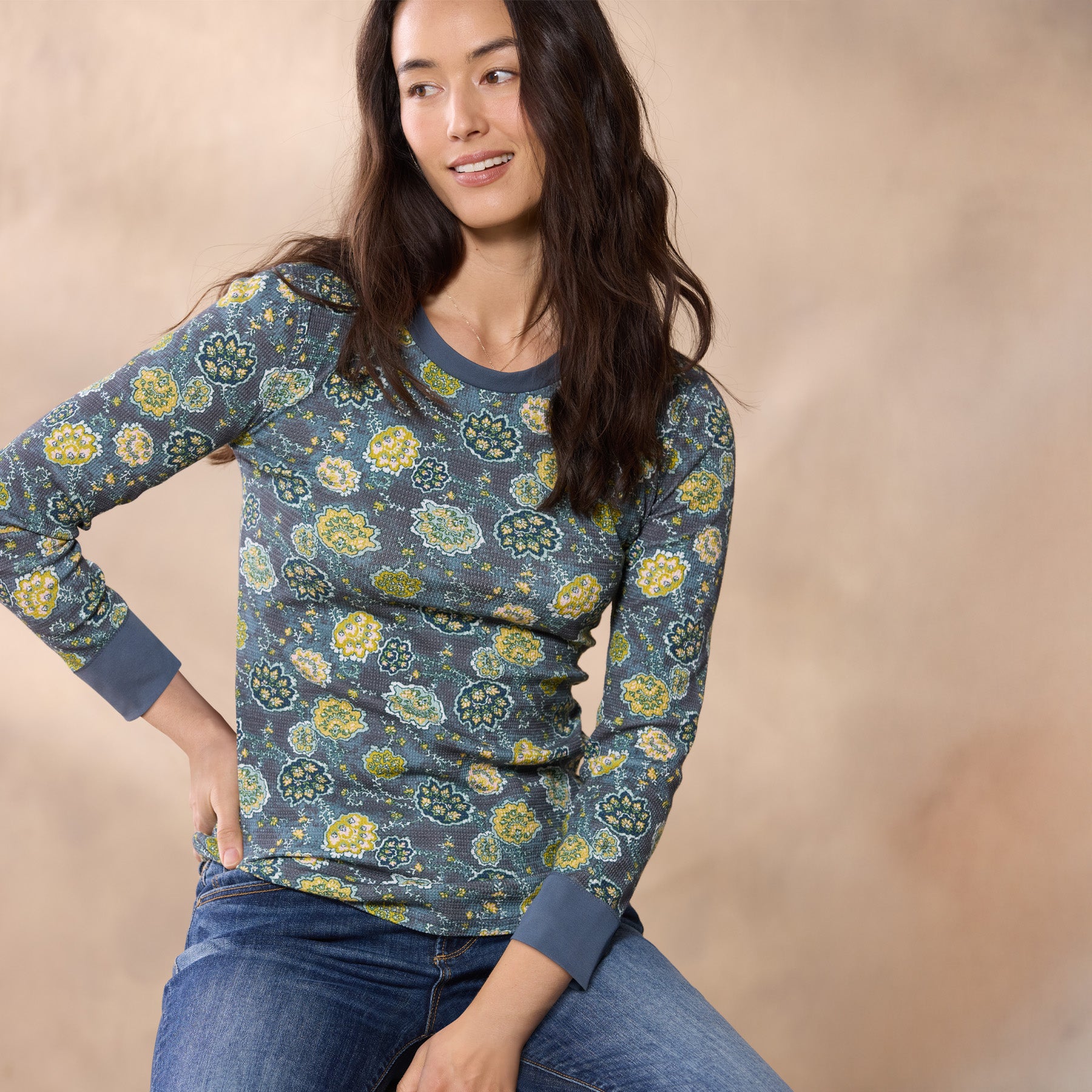 Our Sausalito is an update to a Sundance favorite—a cozy crewneck thermal in the loveliest floral print! Three-quarter sleeves with rib trim at the cuffs and neckline. Cotton/spandex. Machine wash. Imported. Exclusive. Sizes XS (0–2). S (4–6). M (8–10). L (12–14). XL (16–18). XXL (20–22). Approx. 25.5l.