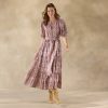 This exclusive. handcrafted dress features embroidered teal medallions on the yoke and sleeves. ladder lacing and a tie at the waist with tassels. Imported. Sizes XS (0-2). S (4-6). M (8-10). L (12-14). XL (16-18). XXL (20-22). Approx. 44l.